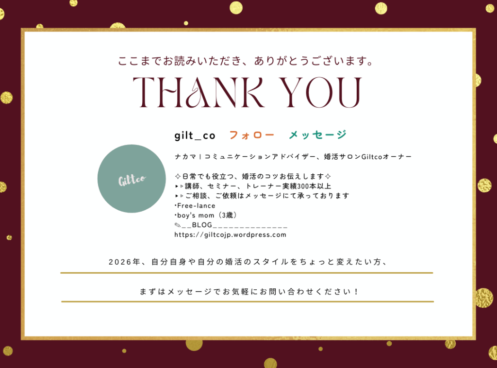 婚活サロンGiltcoオーナーのナカマです。